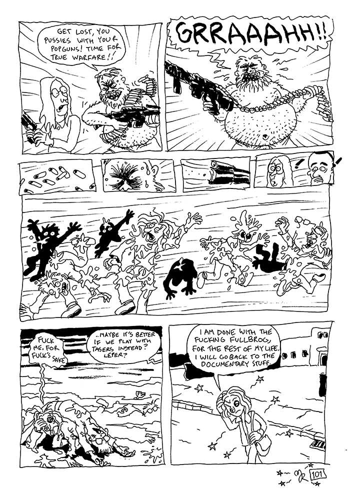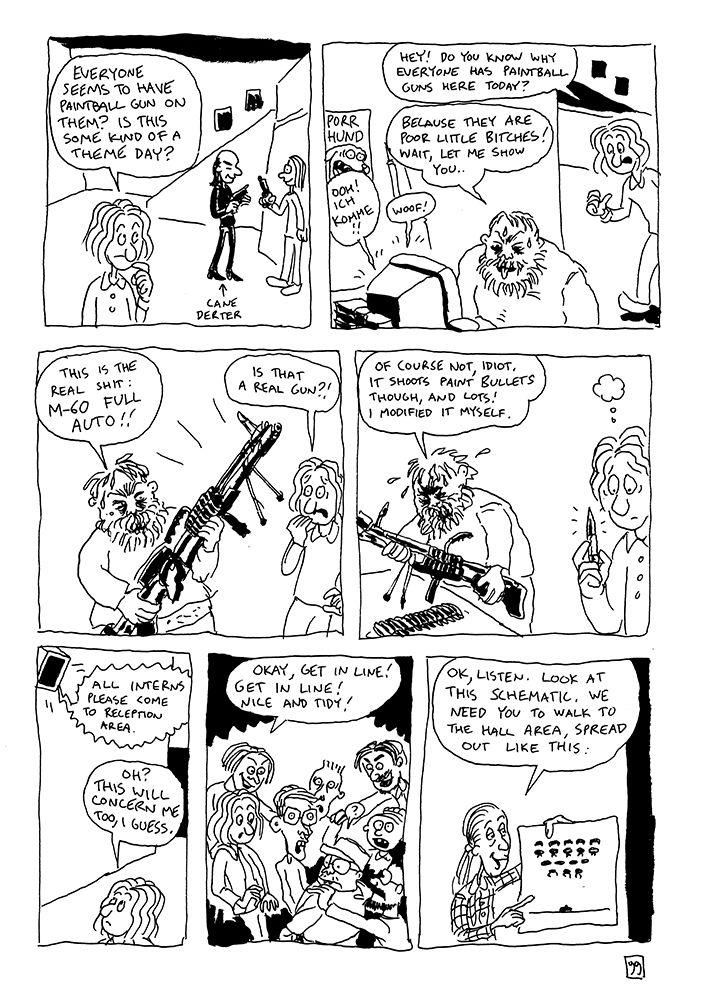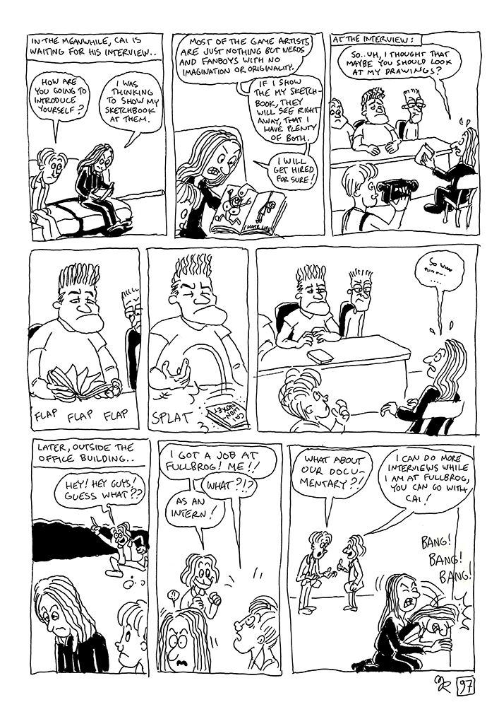 In the first episode of Chapter 3, our protagonists continue their journeys to the offices of Fullbrog, where they meet legendary designer Leper Polynom, who hires the other documentarist as an intern. Fun and games ensue..