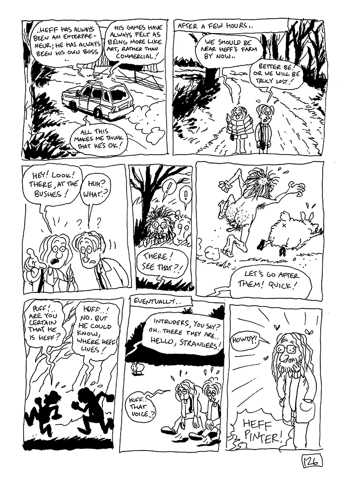 Our protagonists travel to Wales and meet Heff Pinter, the legendary developer of many psychedelic classics. Heff takes them along in to mind-opening journey through space and time. NSFW warning; for dangling hairy man bits.