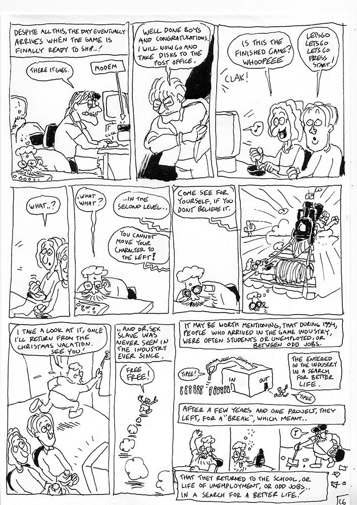 Episode #3: Release party (Pages 12-19) Posted bygameindustrycomicJanuary 26, 2020Posted inChapter 1Tags:chtulhu, comic, crunch, game development, game industry, nineties, release party, tequila Share this: Click to share on X (Opens in new window) X Click to share on Facebook (Opens in new window) Facebook Like Loading... Related