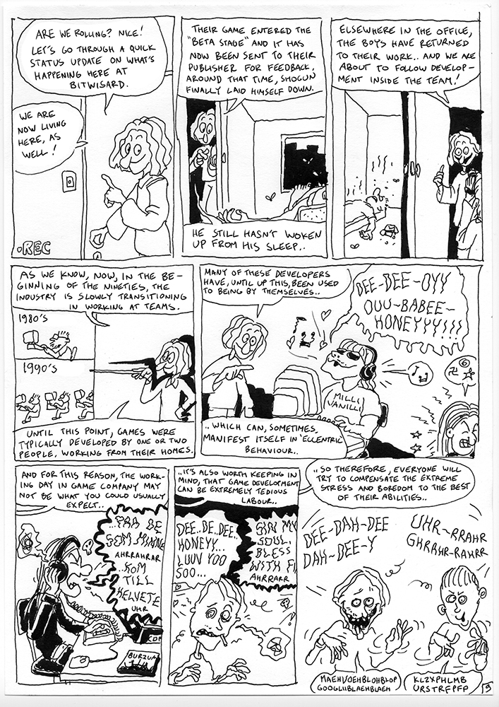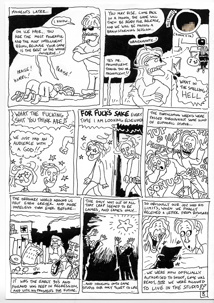 Disclaimer for new readers / people with low reading comprehension: Although this comic is fictional, it tries to accurately portray the personalities and attitudes involved in game development personally observed by the author many decades ago. As a result, you may find use of language and views expressed by (fictional) characters as something that can be labelled as inappropriate / offensive, and which obviously & certainly does not reflect the attitudes and views of the author. If confused, please read the FAQ.