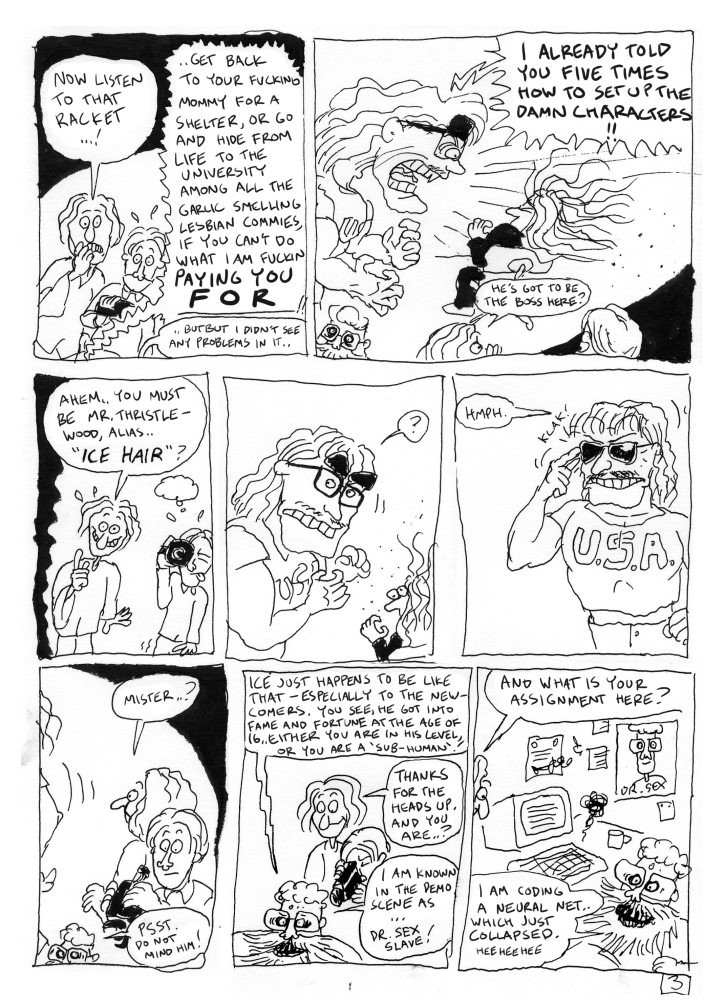Disclaimer for new readers / people with low reading comprehension: Although this comic is fictional, it tries to accurately portray the personalities and attitudes involved in game development personally observed by the author many decades ago. As a result, you may find use of language and views expressed by (fictional) characters as something that can be labelled as inappropriate / offensive, and which obviously & certainly does not reflect the attitudes and views of the author. If confused, please read the FAQ.